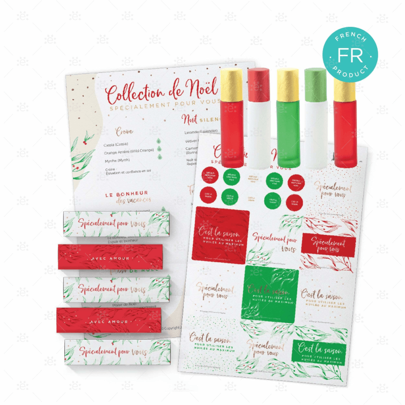 This set has the materials and recipes to make five very special Christmas Roller Bottle blends that you can present in the beautifully co-ordinated Christmas-themed boxes, each with their own cheerful and joyous looking labels to adorn the Deluxe Frosted roller bottles and metallic caps.