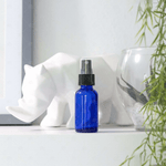 Ce lot de 3 flacons en verre bleu de 30 ml est équipé d'un vaporisateur noir et d'un bouchon en plastique transparent pour une protection optimale.