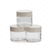 Contenu : 3 pots en verre et couvercle en plastique blanc.