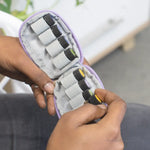 La conception en néoprène légèrement rembourré protège les flacons des dommages et de la dégradation causés par la lumière, tandis que les sangles élastiques robustes à l'intérieur les maintiennent fermement en place. Pratique pour les voyages, pour une démonstration rapide ou pour un échantillonnage.